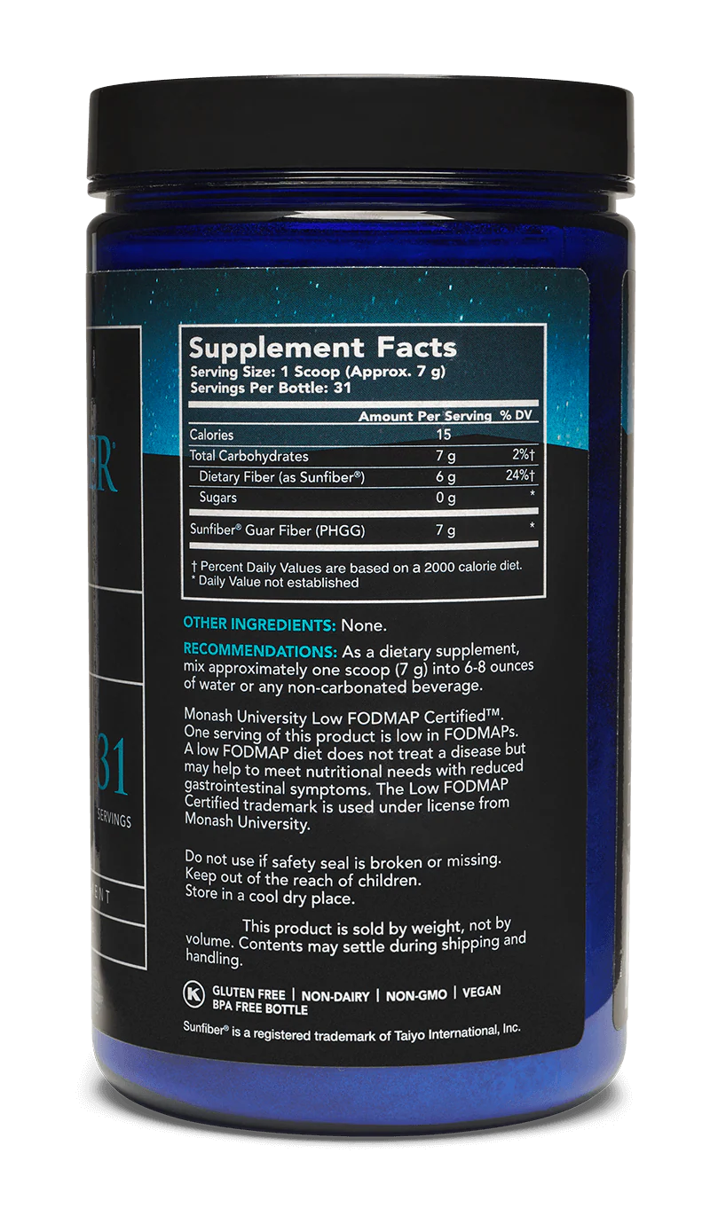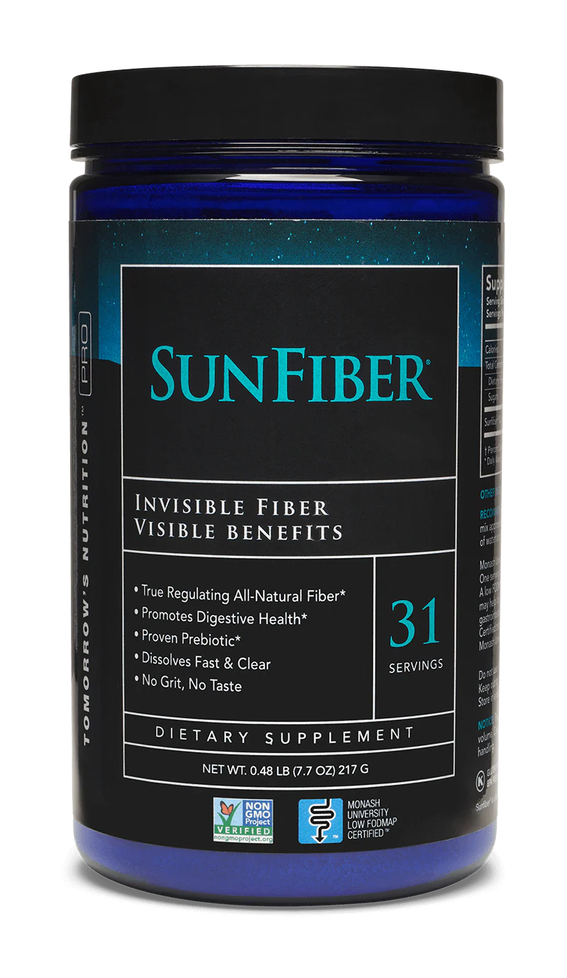 Sunfiber® is a true regulating, all-natural prebiotic fiber supplement that delivers six grams of proven, clear, grit free, 100% soluble fiber.* It is easy to take and helps balance the gut microbiome, resulting in digestive comfort and regularity.*