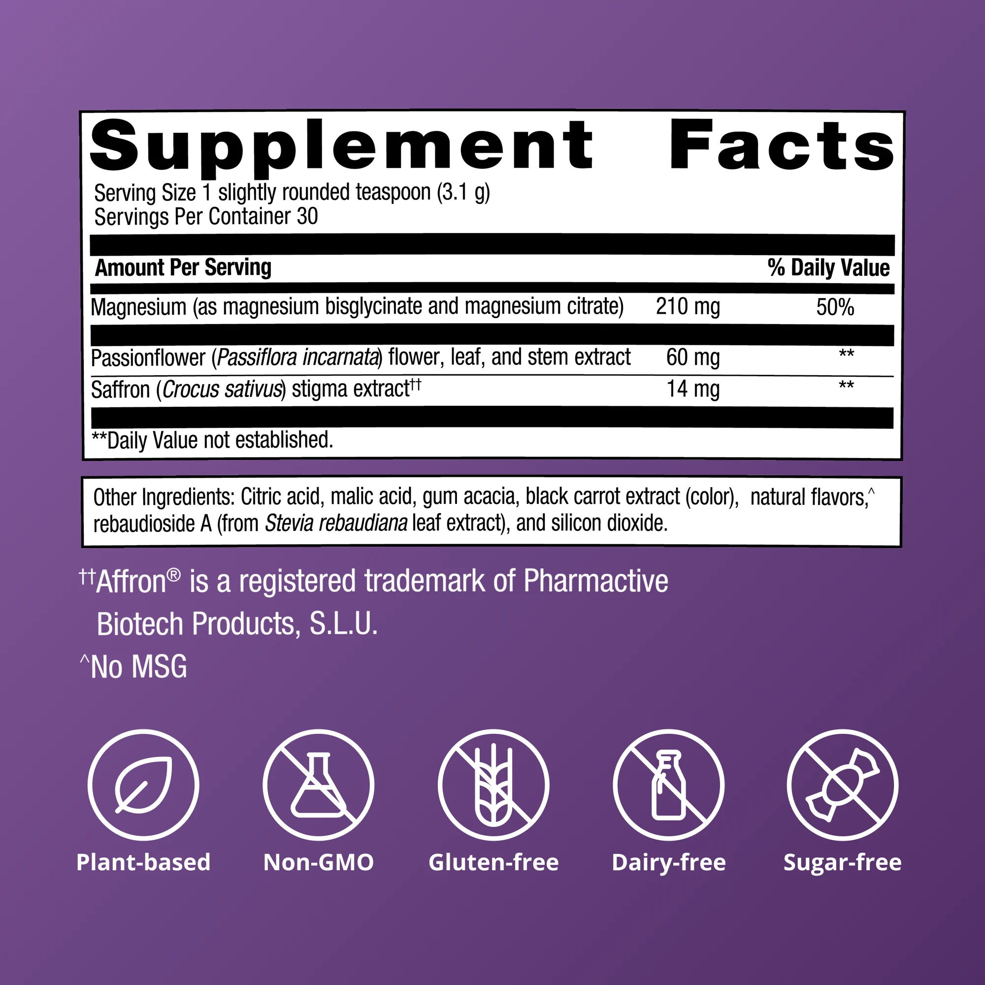 - Clinically Studied Ingredients: Passionflower and saffron (Affron®)support relaxation and emotional wellbeing.*